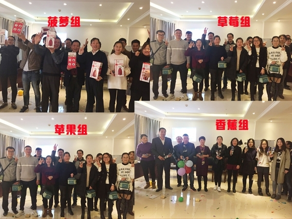 愉快地吃完午餐之后,有趣的游戲還在進行中,腦筋急轉彎、猜歌名、夾彈珠、踩氣球、頂橘子、搶板凳。。。。一大波好玩的游戲仿佛瞬間帶領大家回到了難忘的童年時光。經過激烈的比賽,最終,菠蘿組以絕對的優勢贏得了冠軍,笑到了最后。草莓組與蘋果組緊跟其后分別獲得第二名與第三名的好成績。香蕉組作為最后一名被大家懲罰表演了集體鋼管舞,徹底點燃了現場的氣氛…大家笑成一團。