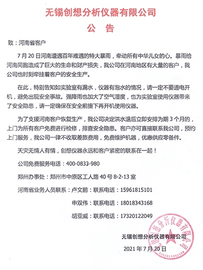 7月20日河南遭遇百年難遇的特大暴雨,牽動所有中華兒女的心。暴雨給河南同胞造成了巨大的生命和財產損失,我公司在河南地區有大量的客戶,我公司也時刻牽掛著客戶的安全生產。