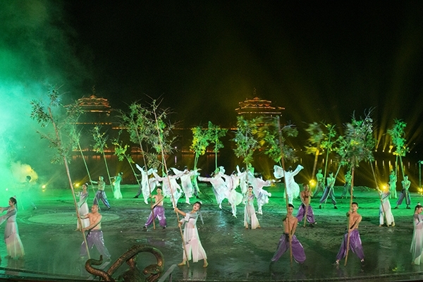 吃過晚飯,小鎮里的“居民”信步來到太極廣場,山水大秀《逍遙游》將會在此演出,180°的臨水舞臺和水上延展舞臺,全方位近距離為我們展現。