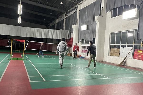 下午,大家陸續來到了球館內,經過簡單的熱身運動后,通過自由配對、分組對抗等方式,誠邦健兒們在球場上互相切磋、一較高下。有的同事具有專業水準,打球快、準、狠,讓人不禁拍手叫好;有的場地上,搭檔雙打的兩人,你攻我守、配合默契,與對手激戰正酣,每個人的身上都充滿了青春的魅力,每個人的臉上都洋溢著燦爛的笑容。